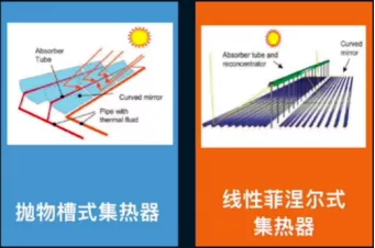 ?太陽能在經(jīng)過衰減、大氣層的折射以及水蒸氣的折射后,來到地球表面的輻照強度就會變得比較低。比如太陽能在大氣層外的能量密度是1300瓦每平米,而即使在北京夏天最熱的時候,到達(dá)地面的太陽的輻照強度也只有900瓦每平米,因此需要通過聚光的方式來獲取更高的能流密度和更高的溫度。目前,太陽能聚光系統(tǒng)主要有拋物槽聚光系統(tǒng)、線性菲涅爾聚光系統(tǒng)、碟式聚光系統(tǒng)和塔式聚光系統(tǒng)四種。