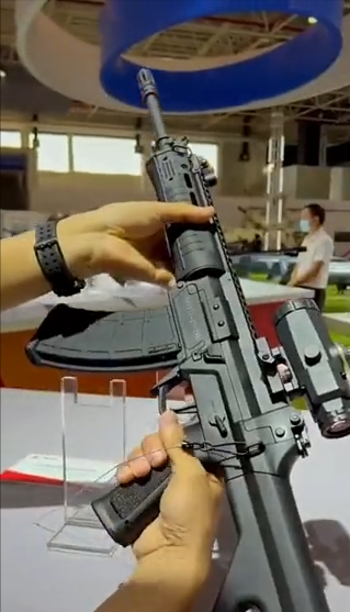 本屆珠海航展中,在主要展示地面裝備的兵器館,兵器裝備集團(tuán)十分大氣地把解放軍新槍族的所有槍械都拿出來進(jìn)行展覽,并且參觀觀眾還能直接拿起來進(jìn)行嘗試,讓因為疫情原因無緣航展的筆者十分羨慕,現(xiàn)在也只能通過網(wǎng)友放出的各種視頻和圖片“云”一下了。