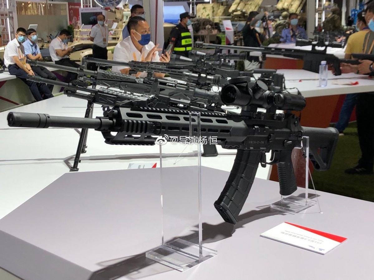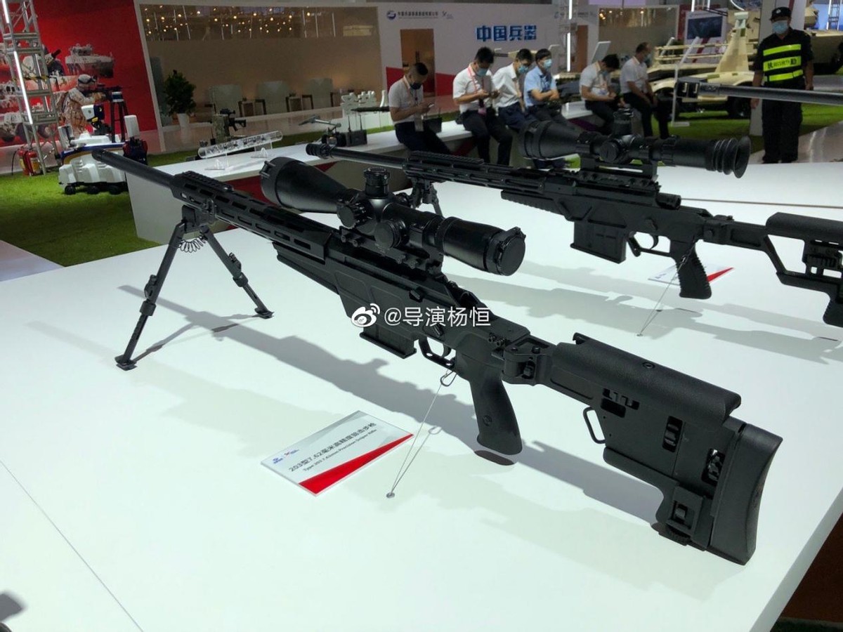 三款狙擊槍,從近到遠(yuǎn)為7.62口徑(203型高精狙),8.6口徑(202型高精狙)和12.7口徑(201型大口徑狙擊步槍)