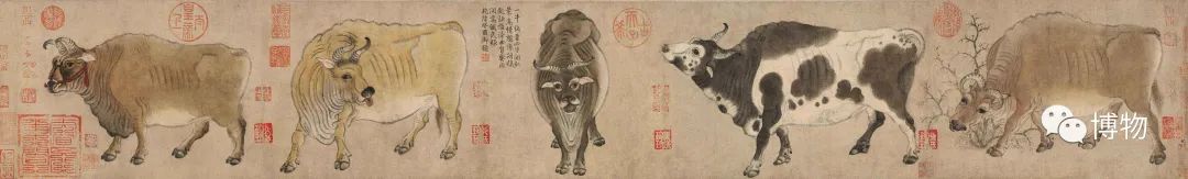 滑動查看國寶級唐代名畫《五牛圖》。作者韓滉身為朝廷高官,認為“農(nóng)事為天下之本,而耕牛則為農(nóng)家之寶”,他畫牛多少有些“宣傳政策”的良苦用心。