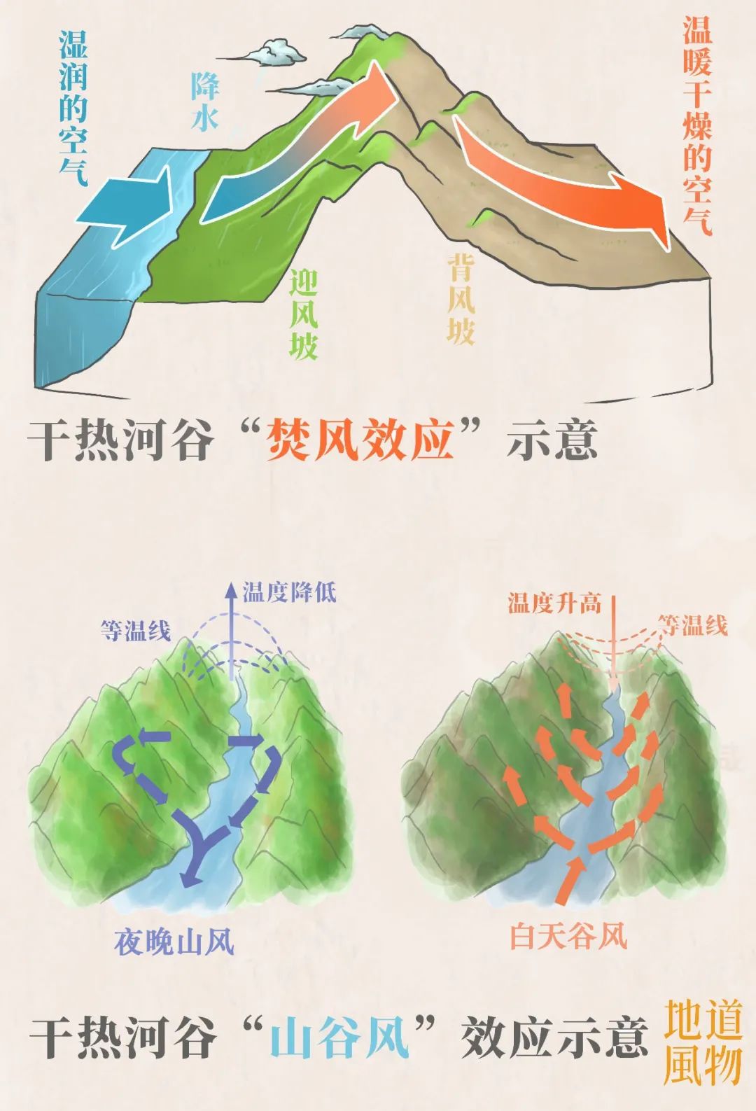 光與熱、季風與降雨,再加上獨有的地貌,共同塑造了永仁的甜蜜之源。這里海拔較高,太陽輻射強,冷空氣受到山脈阻擋難以進入,河谷沿線地勢較低,熱量散失不易,這種低緯度地帶,南北向的河流深切峽谷,氣溫高、谷頂濕、谷底干,被稱為“干熱河谷” 。