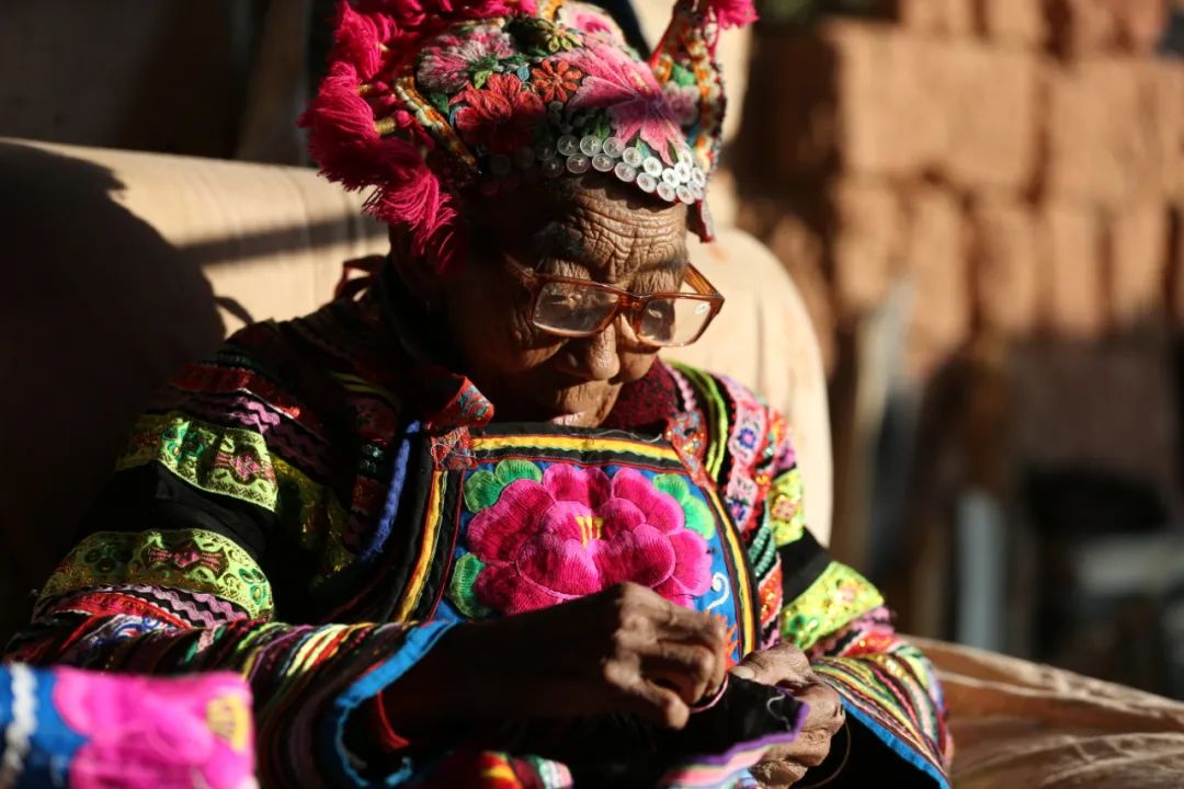 神秘多姿的彝族文化,在西南地區(qū)影響深遠。彝族之外,永仁縣還有傣族、回族、傈僳(lì sù)族等23個民族,與群山萬壑的地貌相呼應。山、壩子、河谷……一處處多彩的山河紋理,在彝族刺繡的圖案上綻放。永仁的彝族刺繡章法統(tǒng)一,風采萬千,真可以說是五里不同繡,十里不同彩。