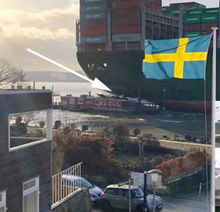 2019年,長賜號下水不久,就在易北河距離漢堡港不遠的地方,撞上了一艘??吭诟劭谥械亩纱?。長賜號沒能及時減速,25米長的矮小渡輪被撞扁了船身,所幸沒有人員傷亡,而長賜號僅僅刮花了一點油漆。這樣的巨輪行駛在狹窄,繁忙的河道中,難免給人以大象闖進集市里的感覺。